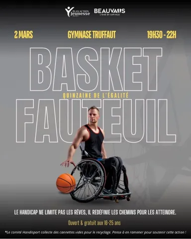 Dans le cadre des Quinzaines de l’Égalité, la Ville de Beauvais propose une soirée découverte et pratique de basket fauteuil.