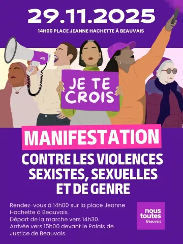 À l’occasion du 25 novembre, journée internationale de lutte contre les violences faites aux femmes, le collectif Nous Toutes Beauvais organise pour la première fois une grande marche contre les violences sexistes et sexuelles faites aux femmes et aux enfants.