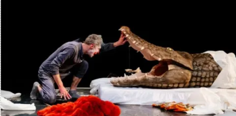 Pour retrouver le goût de l’enfance perdue, Peter Pan saute par la fenêtre d’une chambre vide, celle de Wendy, morte de vieillesse, qui n’est plus là à l’attendre. Il nous invite à le suivre dans son inconscient, vers une île intemporelle : le pays du Jamais. Tout au long du voyage clownesque, le personnage réalise qu’il a vieilli, jusqu’à un combat final entre lui et lui-même.