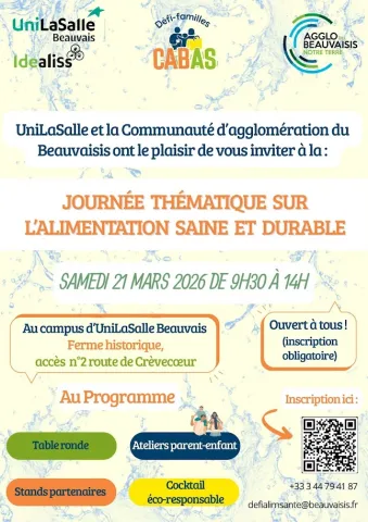 a Journée thématique sur l’alimentation saine et durable se tiendra le samedi 21 mars 2026, de 9h30 à 14h, au Campus UniLaSalle Beauvais.