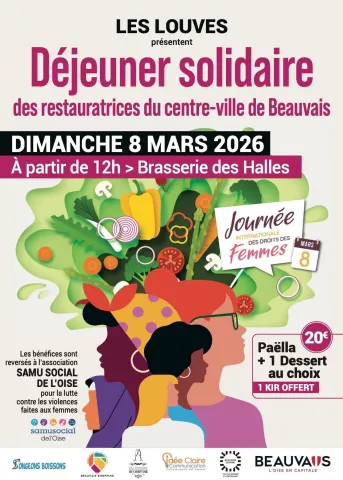 Déjeuner solidaire, les bénéfices sont reversés à l'association SAMU SOCIAL DE L'OISE pour la lutte contre les violences faites aux femmes.