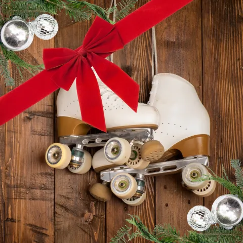 Soirée thématique avec décorations, animations et DJ sur la piste de rollers vintage de vos féeries de Noël.