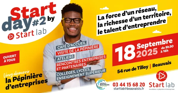 2ᵉ édition du START DAY, qui se tiendra jeudi 18 septembre 2025 de 9h30 à 16h, au Start Lab – Pépinière d’entreprises du Beauvaisis (54, rue de Tilloy, Beauvais).