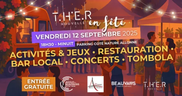 🎉 Le 12 septembre, on fête le quartier T.H.E.R Nouvelle ! 📅 De 18h30 à minuit 📍 Parkings Côté Nature & Mr Bricolage – Allonne 🎟️ Entrée gratuite Au programme : ✨ Une soirée festive et conviviale 🎶 3 concerts pour ambiancer la nuit : années 80, pop/rock et variété française 🍔 Espace restauration pour régaler les papilles 🌱 Village des acteurs du quartier : mobilité, végétalisation, vie associative… 🚲 Parking vélo à disposition 👉 Viens célébrer, danser et découvrir ton nouveau quartier dans une ambiance chaleureuse et musicale !